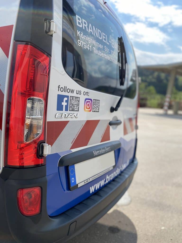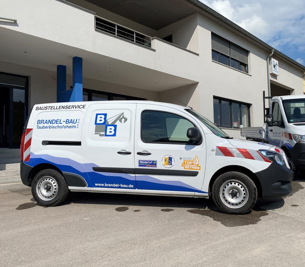 Zum ersten Mal konnten wir das neue Styling unseres Brandel-Logos auf unseren Fahrzeugen anbringen! Nun sind wir noch auffälliger auf den Straßen rund um Tauberbischofsheim und im ganzen Main-Tauber-Kreis unterwegs. Mit unserm neuen Mercedes-Benz Kipper werden wir hauptsächlich die Zeitvertragskolonne in TBB modernisieren und im Stadtgebiet Kleinbaustellen bedienen. Der Citan, ebenfalls von Mercedes wir das neue Dienstfahrzeug unseres Betriebselektriker, die Ladefläche ist mit einer Miniwerkstatt ausgestattet um direkt auf Baustellen Werkzeug reparieren zu können.